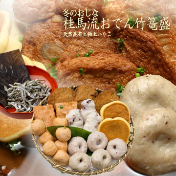 赤土牛蒡天 桂馬流おでん 赤土ごぼう天篭盛り