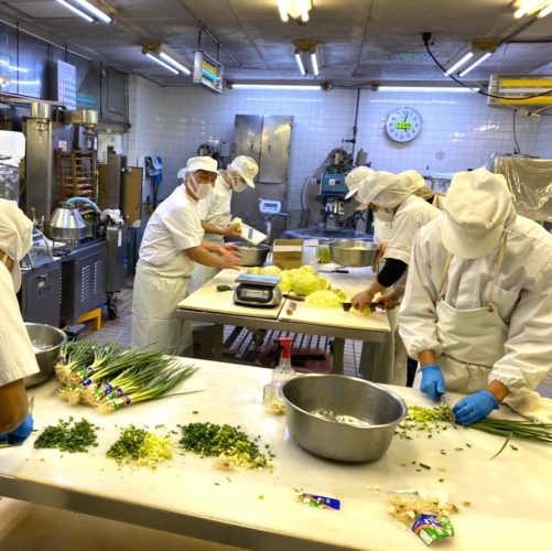 お好み焼天に入れる尾道産わけぎ、キャベツを刻んでいます✨