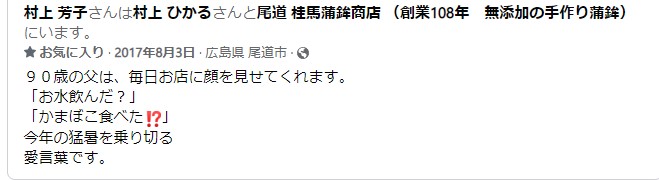 桂馬蒲鉾商店2代目 父 村上隆は、昨年11月30日に