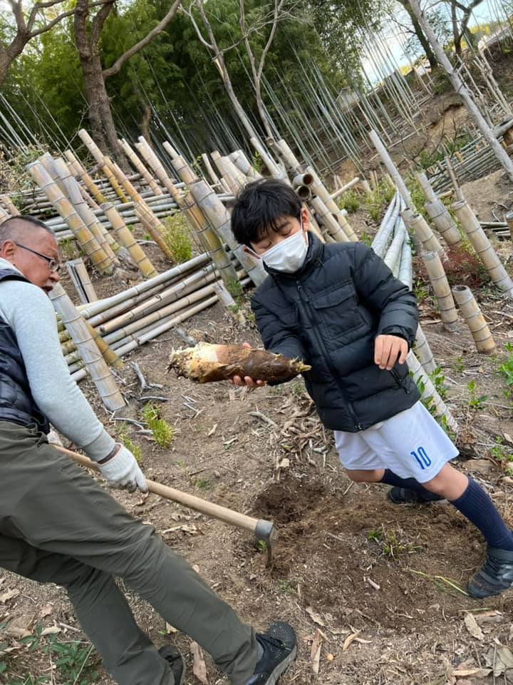 ファームの竹藪で、タケノコ掘りや薪割り体験まで。
