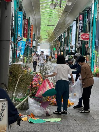 今日は、午前11時から七夕の飾りを商店街の皆さんと取り付けました。