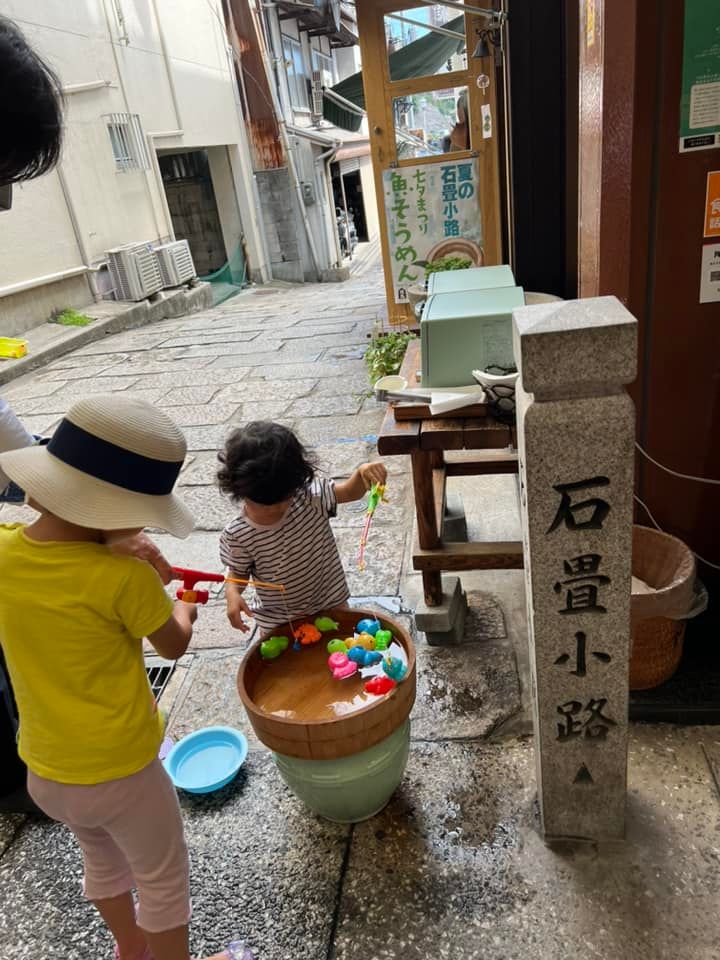 石畳小路の昔ながらの玩具が我が家の孫だけではなく、小さなお客様までとりこにしております。