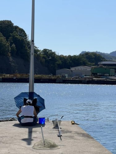桂馬蒲鉾商店のパーキング前で若い釣り師に出会いました。