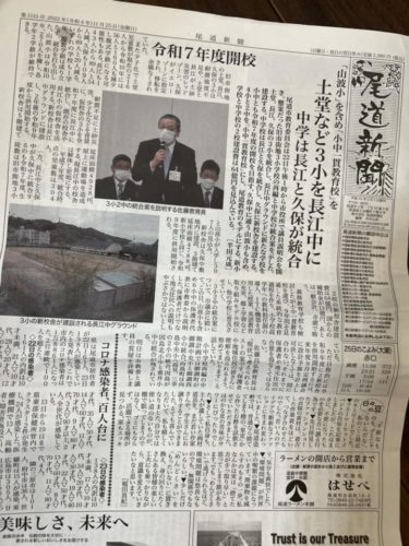 11月22日尾道市教育委員会から議員さんと学校関係役員さんに説明があったそうです。