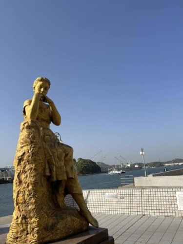 石畳小路を尾道水道へ向かうと出会う少女の像「潮」の彫刻作品に今日は、心動かされました。