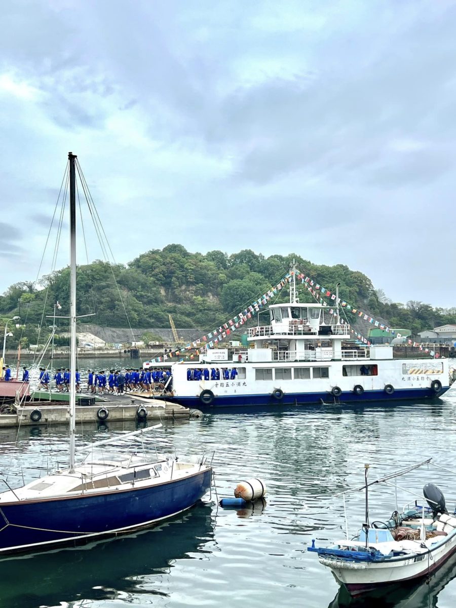 渡船からは、みなと祭り参加の学生さんたちが、青いジャージ姿で一斉に下船してます。