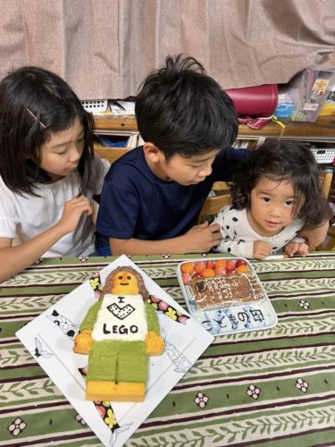 お兄ちゃんは、レゴケーキの型でかわいいお人形のケーキを作ってくれました。