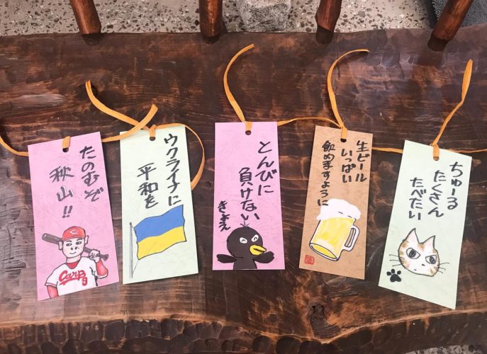 桂馬商店のお客様や、通りかかったお客様、学生さんが思い思いに願いごとを