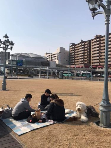 駅前の芝生ではシート広げてまったりの良き時間ですね。