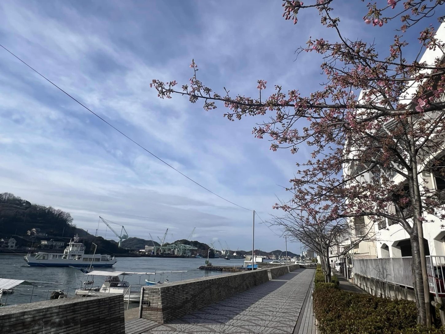 桂馬から歩いて5分の尾道水道沿いの河津桜が咲き始めました。