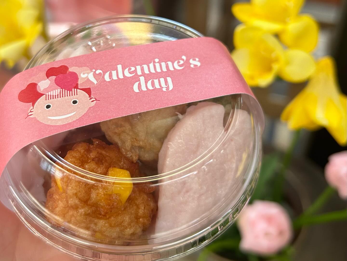 おやつに、ごはんに、おつまみにも人気のつまみ天がバレンタインカップに