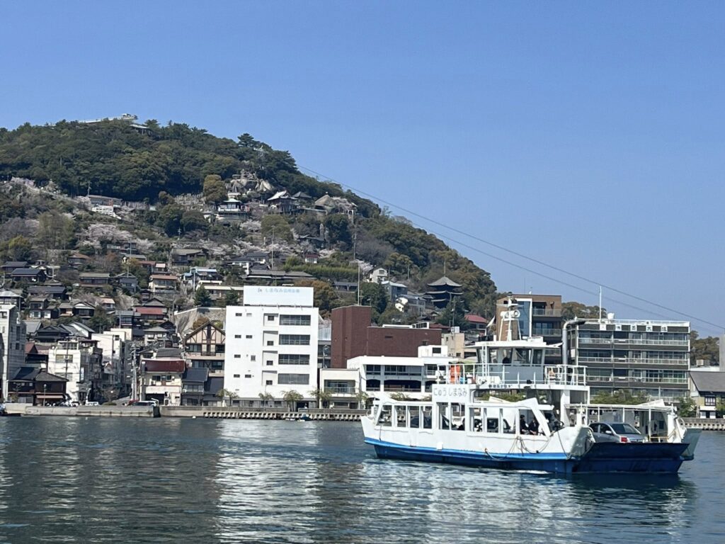 尾道渡船に乗ると向島も小歌島も千光寺も桜🌸色が見渡せて嬉しくなりました。