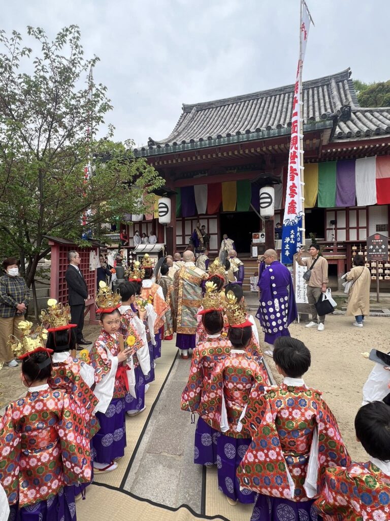 尾道国宝の寺 浄土寺さんで、春観音まつり稚児行列に孫2人が参列させていただきました。