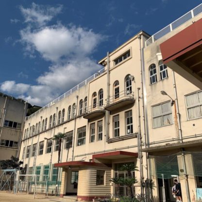東側校舎は、戦前期の鉄筋コンクリート校舎で、アールデコ調のアーチ型の窓を配し、中国地方に存在するのは、土堂小学校と久保小学校2校のみです。