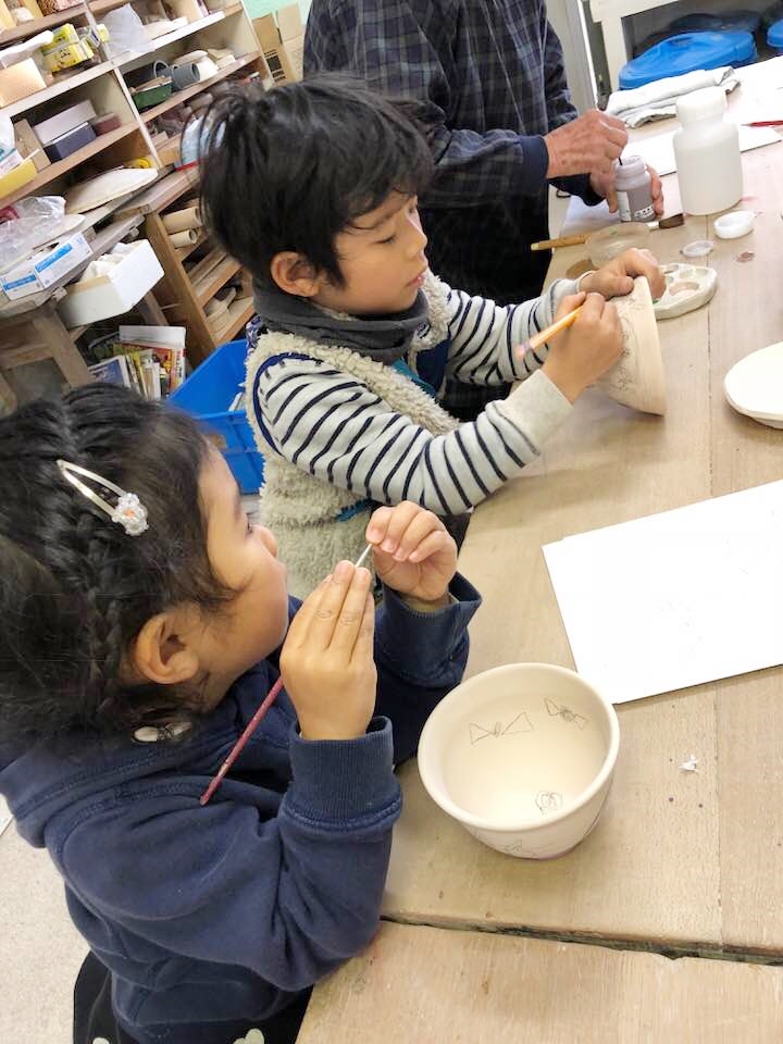 すごく楽しかったです。絵付け料と、素敵なお皿台込みで500円。リーズナブルすぎるお値段な上、子供達はまぜくり、申し訳ない気持ちになりました💦
