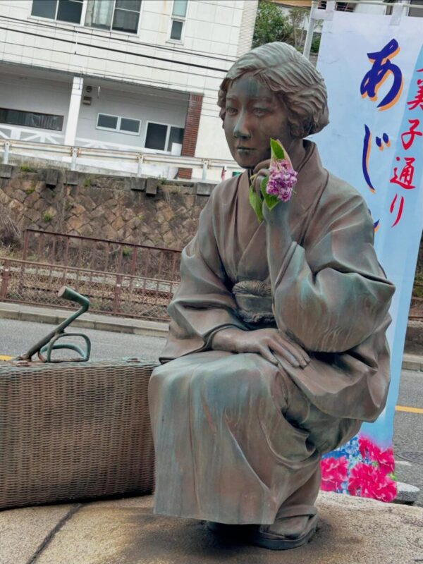 小学校の子どもたちが芙美子像のそばで合唱をしたり、紫陽花の花を手向けたりとあじさいきに参加させていただいていました。