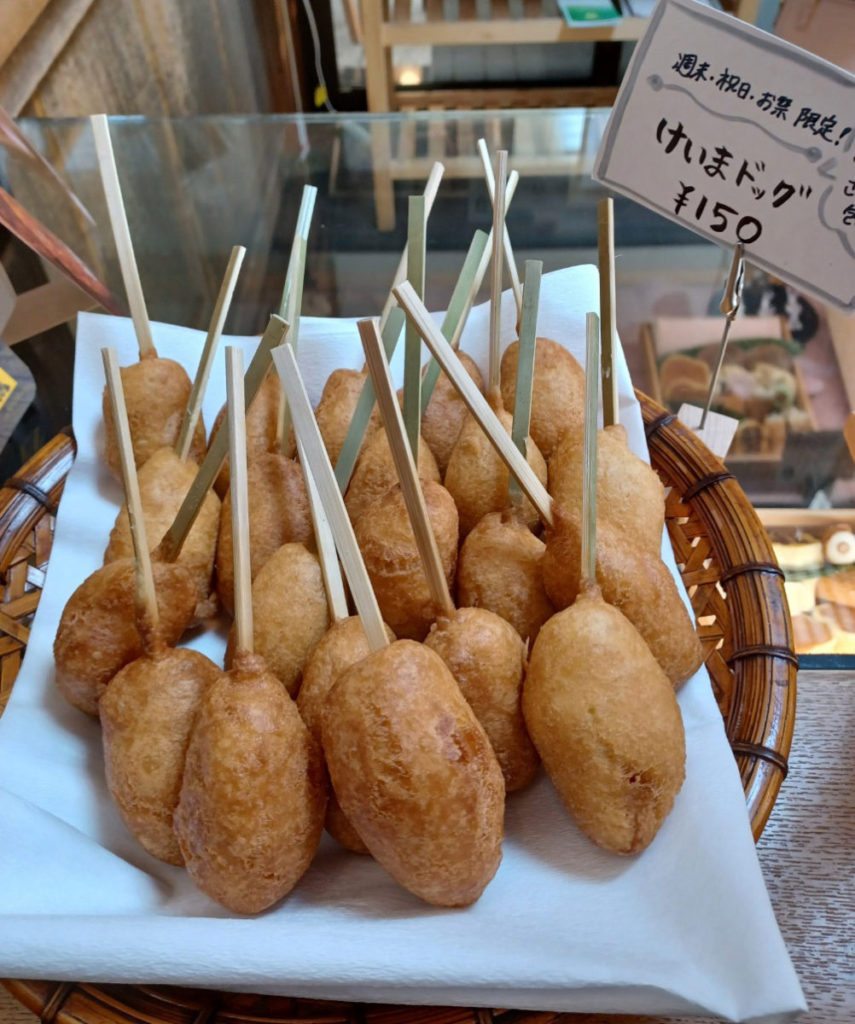 本日のけいまドッグのお魚すり身はほんのり甘いふわふわすり身です。