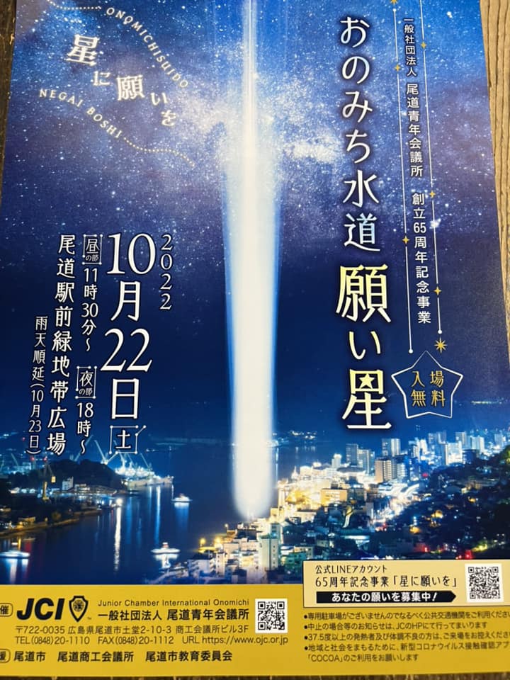 こんばんは。いよいよ明日10月22日(土)は、尾道青年会議所 創立65周年記念事業