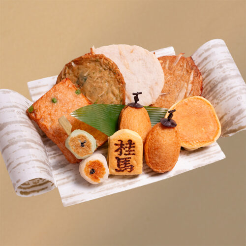 柿天・梅焼・駒焼・茶壷・白ごぼう天・ごぼう天・野菜天・桂馬流お好み焼入り