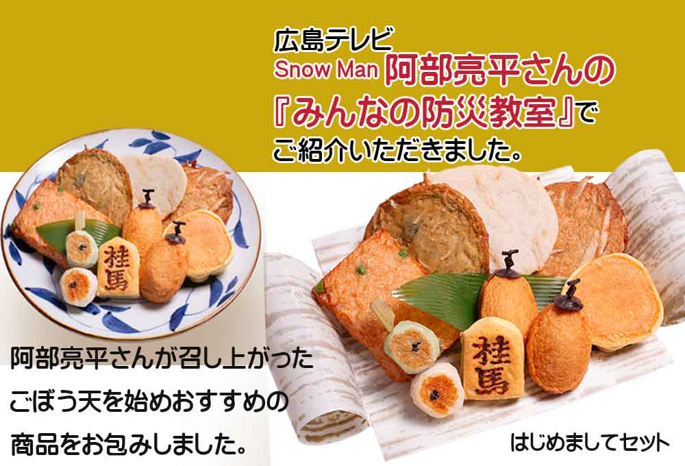 広島テレビ『阿部亮平さんのみんなの防災教室』でごぼう天をご紹介いただきました。
