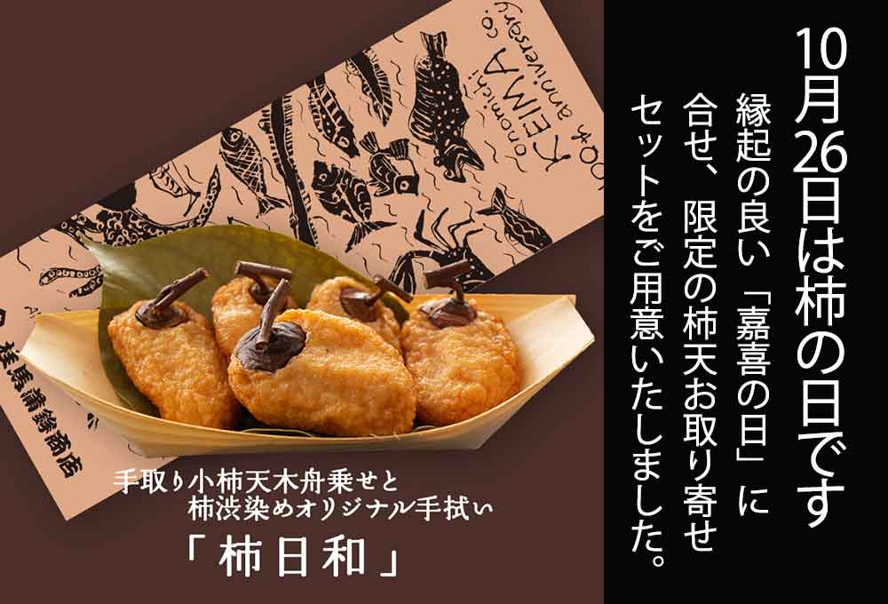 尾道名産の柿・干柿のかたちを写した桂馬蒲鉾元祖の柿天にちなみ、