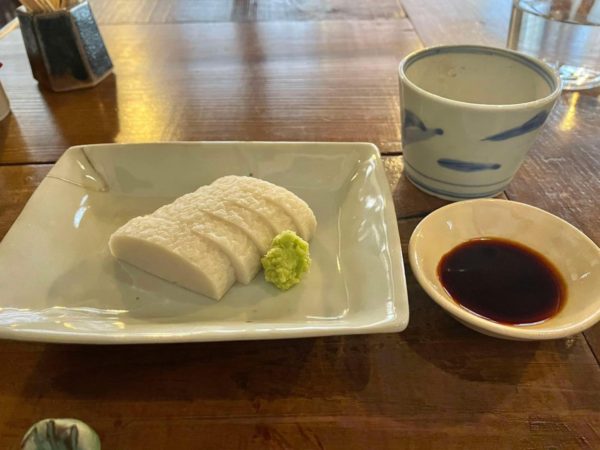 手打ち蕎麦 笑空さんの蕎麦前の一杯のあては、桂馬蒲鉾の板わさでお楽しみいただきました。